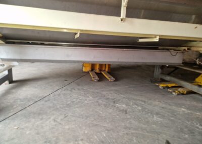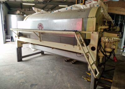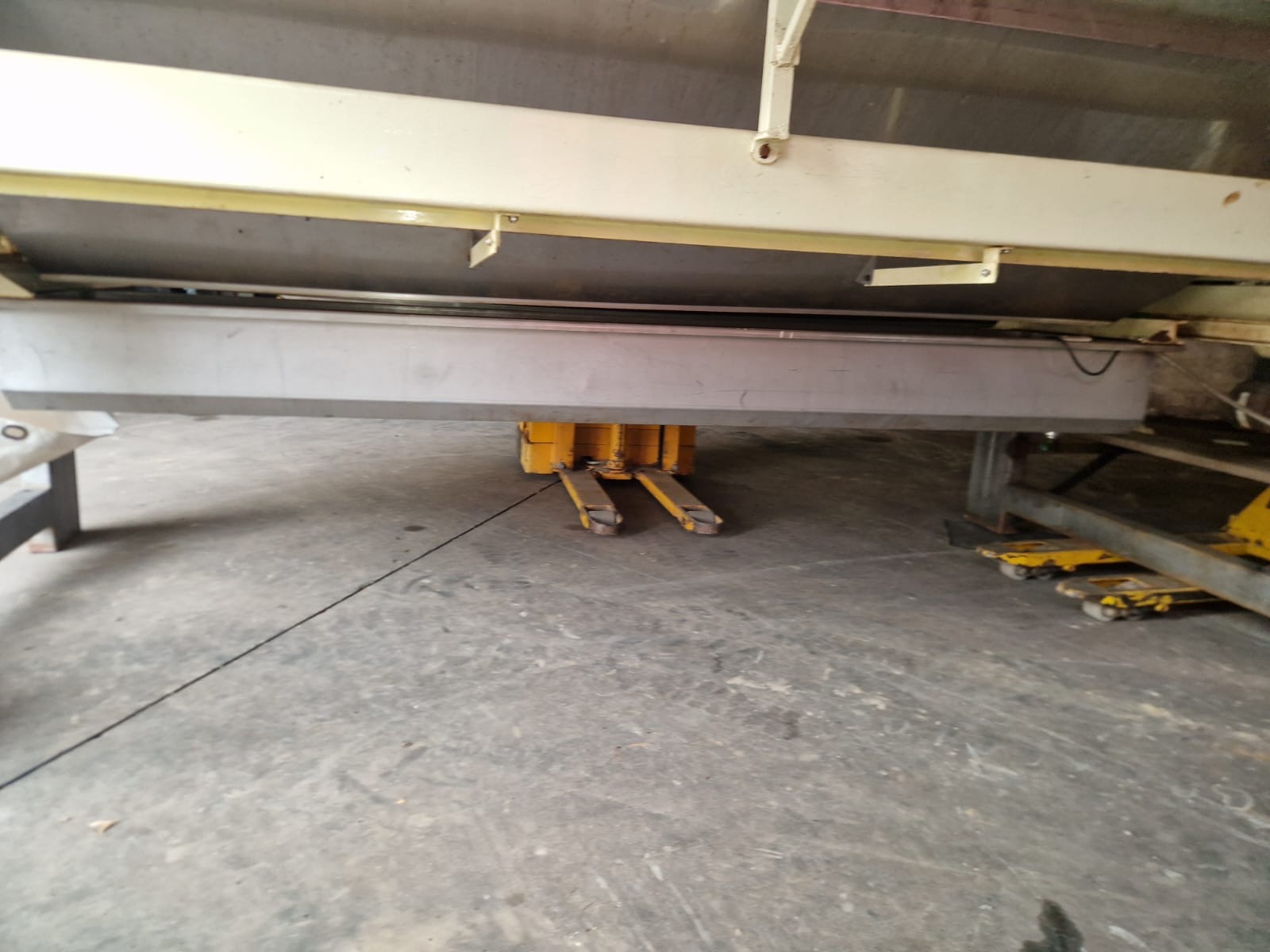 1x ca. 10.000 ltr. VA Trauben-Annahmewanne Fa. Vauchet Beguet FR, Bj. 2000, gebraucht, mit Vorentsaftung, sehr schonender Austrag durch Förderband anstelle einer Schnecke, sehr gut geeignet zur Ganztraubenverarbeitung, große Austragslucke gesteuert mit 2x Pneumatik Zylindern (stufenlos verstellbar), ca. Maße: L: 6,50 m, B: 2,40 m, H: 1,75 m, Höhe Untergestell: 2,50 m, Gewicht mit Untergestell: 3 to.