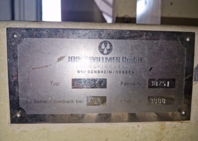 1x Tankpresse Willmes WUP 3000, Bj. 1995, Presstuch neu, incl. Kompressor, Fußerhöhung, innenliegende Saftkanäle, Zentralbefüllung